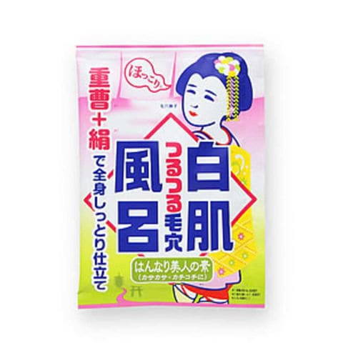 重曹に、厳選された和の素材(絹、米ぬか、豆乳発酵エキス)を配合したはんなり美人の素、「重曹白肌風呂」。