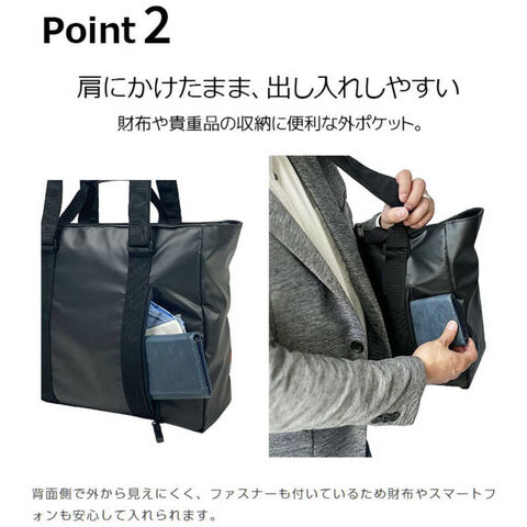 背面ポケットは肩掛けのまま荷物を取り出せて便利。