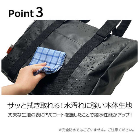 耐久性と撥水性 厚手の1680Dポリエステル生地とPVCコート加工で、水や汚れもサッと拭くだけでお手入れ簡単。