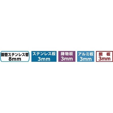 ●被削材:ステンレス管、銅管、パイプ材(8mm)、板材(3mm)。