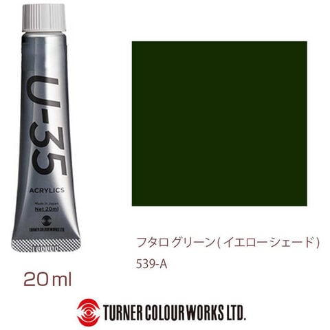 ターナー色彩 ヘビーボディ 20ml U-35 アクリリックス フタログリーン(イエローシェード) UA020539