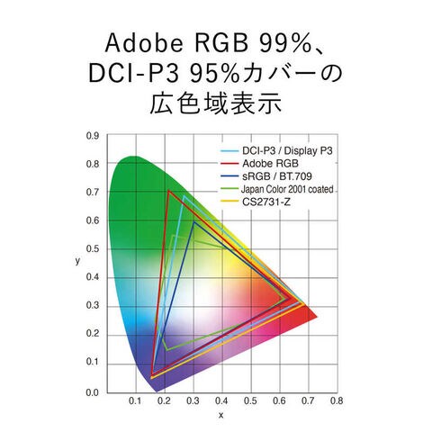 ●DCI-P3色域を90%以上、Adobe RGB色域を99%カバーする広色域表示