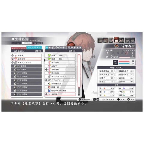 成長に応じて、生徒たちは戦闘で使うスキルを習得します。