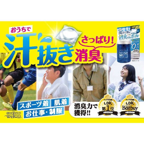洗たく洗剤と一緒に使用していただくことで、洗濯物の悪臭を消臭します。