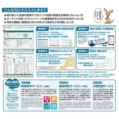 売上本数No.1「かるがるできるシリーズ」の顧客ソフト。顧客管理が簡単にできます。対応記録の管理や様々な検索ができます。