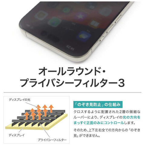 360°全方向からプライバシーを守るのぞき見防止フィルターです。
