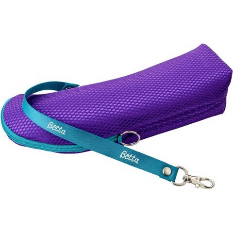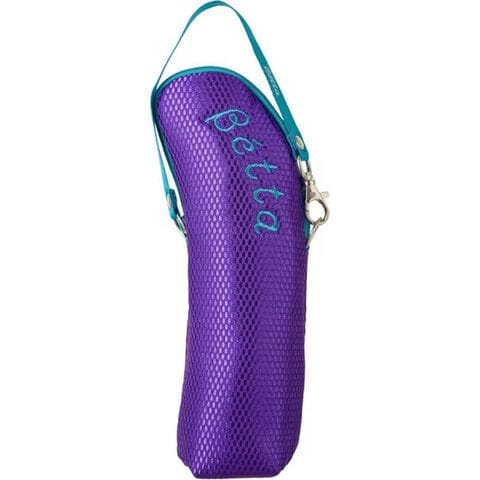 光沢のあるメッシュ生地で高級感があります。ラベンダーをイメージしたパープルが上品。ストラップとお揃いのブルーの刺繍もポイントです。