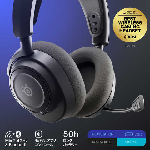 STEELSERIES Arctis Nova 7P Gen 2 [ワイヤレス(Bluetooth+USB-C) / 両耳 / ヘッドバンドタイプ] ブラック 61744