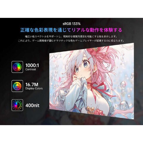 仕様1:[パネル]Fast IPSエッジLEDバックライト搭載表示色1677万色(8ビット)色域133%sRGB 101%DCI-P3