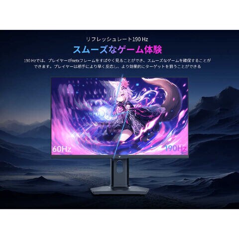 190HzのリフレッシュレートとAdaptive Sync技術を搭載し、遅延やティアリングを最小限に抑え、ゲーマーに最適なスムーズなプレイ体験を実現します。