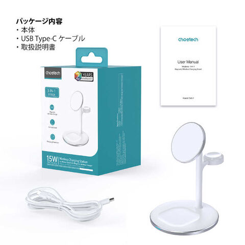 CHOETECH 3-in-1 磁気ワイヤレス急速充電器 ホワイト T585-F-V12