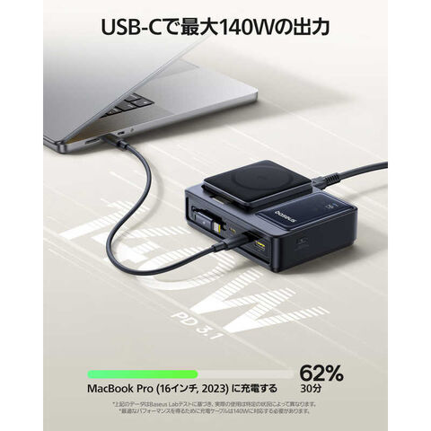BESEUS Nomos 5-in-1 ワイヤレス充電器 Qi2 15W PD100W巻取りケーブル内蔵 ブラック P10178801123Z1
