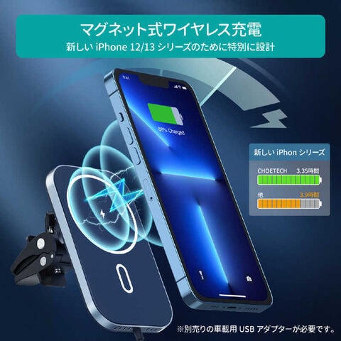 CHOETECH Magsafe カーマウント iPhone 14/13/12シリーズ用 ワイヤレスカーチャージャー T200F ブラック
