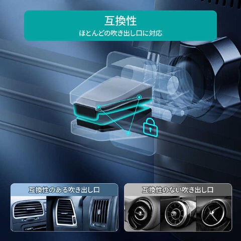 ほとんどのエアコン吹き出し口に対応しています。※円形設計の吹き出し口には対応していません。水平設計の吹き出し口のみです。