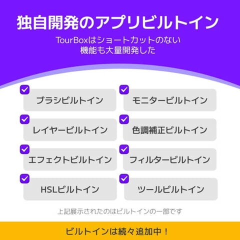 Clip Studio Paint、Sai、Photoshop、Live2D、DaVinci Resolve、Final Cut Pro、Premiere、Lightroom、Capture One、After Effect、Camera Raw、AutoCAD、Blender、ZBrushなどほぼすべてのクリエイティブソフトウェアに対応。