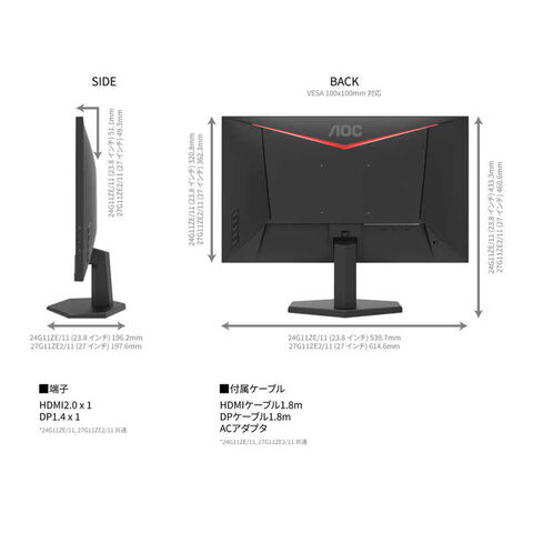 付属品:ACアダプタ、HDMIケーブル1.8m、Displayportケーブル1.8m、ベース、保証書、ケーブル付属リスト