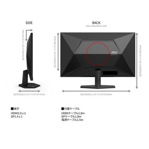 AOC Fast IPS/260/0.3ms [ 27型 / WQHD(2560×1440) / ワイド ] Q27G42ZE/11