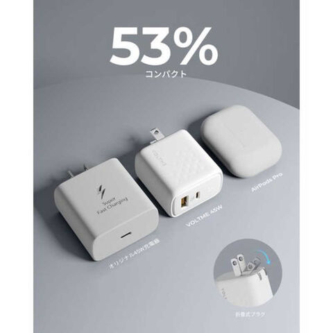 VOLTME レボ 45 デュオ 45W 2ポート TypeC USB-A 白 折りたたみ式 [2ポート /GaN(窒化ガリウム) 採用] V2144