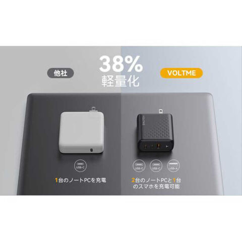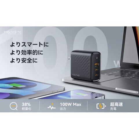 VOLTME レボ100 充電器 100W V-Dynamic TypeC・2ポート USB-A・1 ポート 折りたたみ式 ブラック [3ポート /GaN(窒化ガリウム) 採用] V2103V1