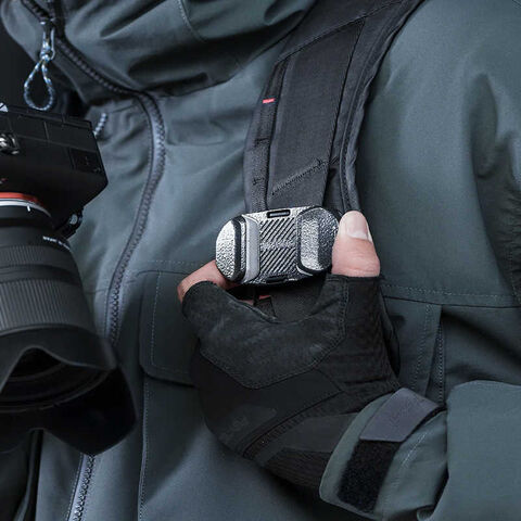 カメラをベルトやバックパックストラップにしっかりと取り付けることができ、ハンズフリーでの移動を実現します。