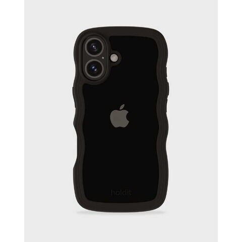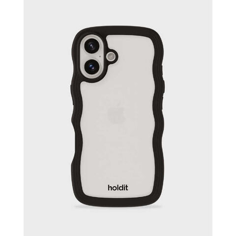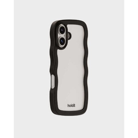 HOLDIT iPhone 16用 背面クリア耐衝撃ケース Wavy Case Black/Transparent 16416