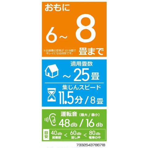 1.フロントパネルから360度空気を吸い込み、約12分で約13.2平米の空気を浄化