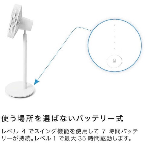 レベル4 でスイング機能を使用すると、7 時間バッテリーが持続。