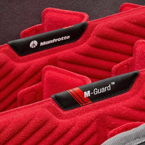 「●マンフロットの最新プロテクションシステム「M-Guardを搭載。カメラコンパートメントはパッド入りで、特別な高密度EVA発泡体を利用した最新のマンフロットプロテクションシステム「M-Guard」を搭載しており、薄手でも優れた衝撃吸収性能を備えています。内部の間仕切りレイアウトはカスタマイズが可能で、カメラの効率的な保護とスペースの有効活用が可能です。メインコンパートメントにはTSAロックを採用しているため、防犯対策も万全です。」
