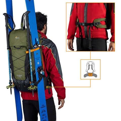 1.登山環境向けの高性能なアウトドア用カメラバックパック 一年を通じて山で行われるすべてのアクティビティに対応するように設計されており、アイスアックス、ロープ、クライミング機器、スキー、ヘルメットなど、各アクティビティを行うための主要な登山必需品を簡単に運ぶための多くの機能が備わっています。