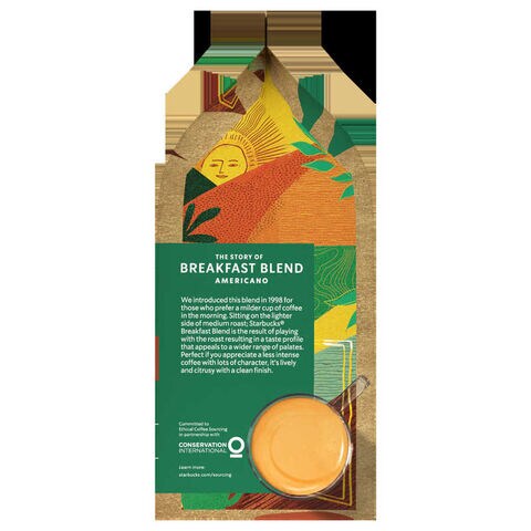 ミディアムローストのブレックファースト ブレンドで、マイルドな口当たりの大きめサイズの一杯をお楽しみください。
