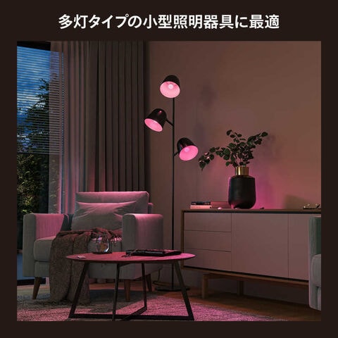 多灯タイプのフロアライトに使用すると、よりカラフルな明かりの演出を楽しむことができます。
