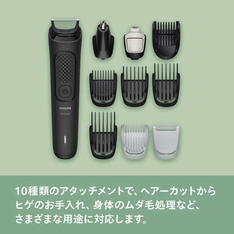 本製品には10種類~12種類のアタッチメントが付属しており、ヘアーカットからヒゲのお手入れ、身体のムダ毛処理など、さまざまな用途に対応します。