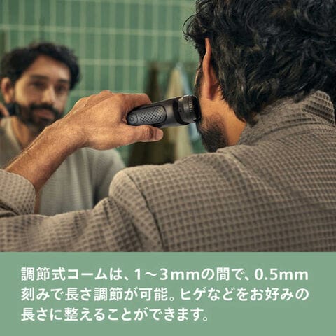 1から3mmの間で0.5mm刻みで長さ調節が可能な調節式コームで、ヒゲなどをお好みの長さで整えることができます。