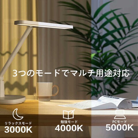 デスクワークに最適な昼光色(5000K)⇒読書に最適な昼白色(4000K)⇒リラックスに最適な電球色(3000K)。