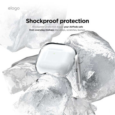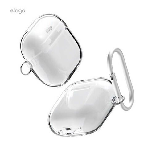 ELAGO AirPods 4 対応 ケース 透明 カバー カラビナ 付き 落下防止 ワイヤレス充電 MagSafe 対応 ソフト TPU クリアケース EL_AP4CSTPHR_TR