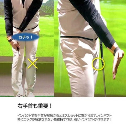 間違った手首のコックや解放を防ぎ、正しいコック動作をすることで距離と方向性を高める理想的なスイング強制アイテムです。