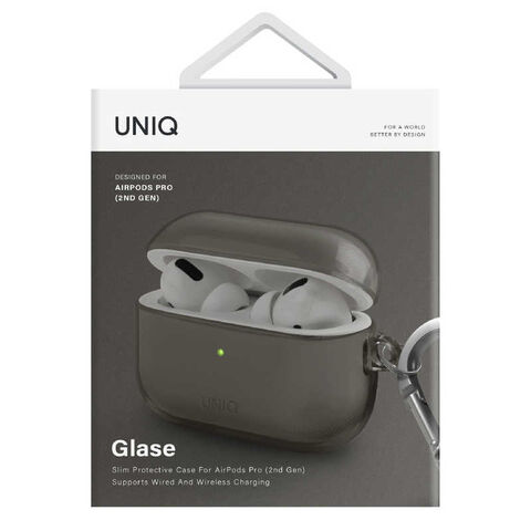 KENZAN GLASE AirPods Pro(第2世代) ウルトラクリア ミニマリストTPUケース スモーク UNIQ [UNIQAPP2GLSSMK] UNIQ-APP2-GLSSMK