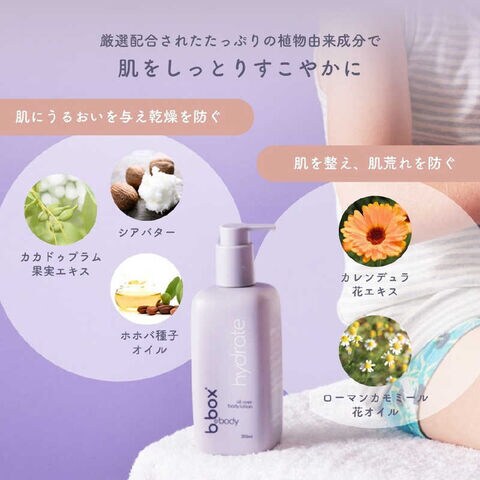 b.box bodyのボディケア製品はすべての成分がヴィーガンフレンドリーで、 製品を作る過程でも動物実験を行っていません。