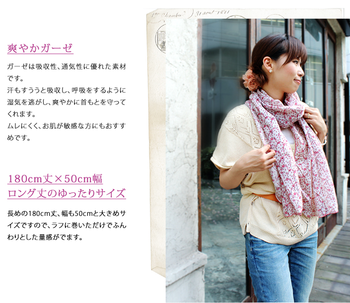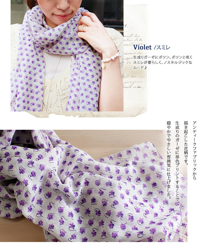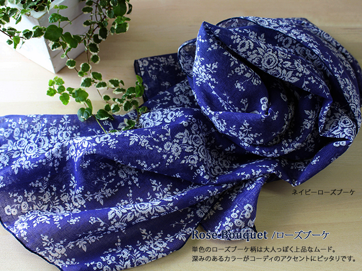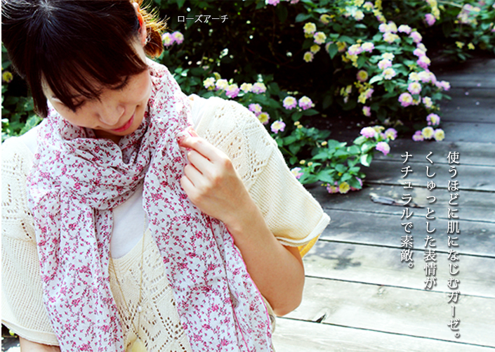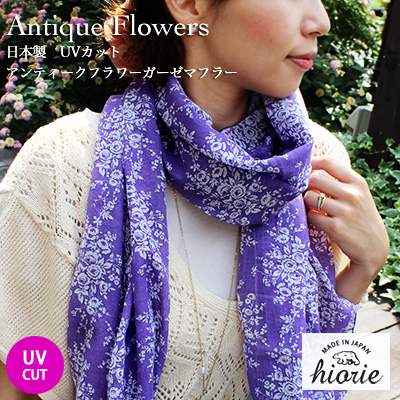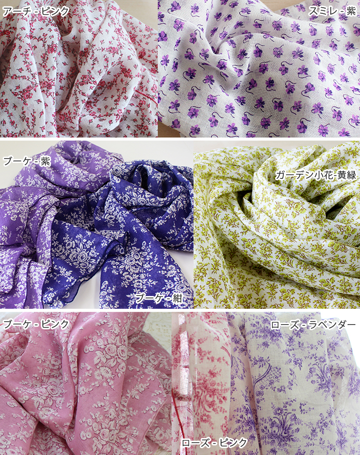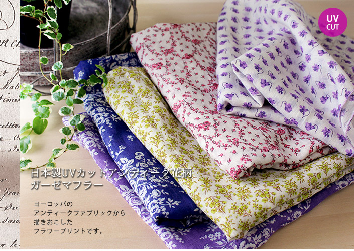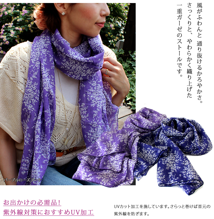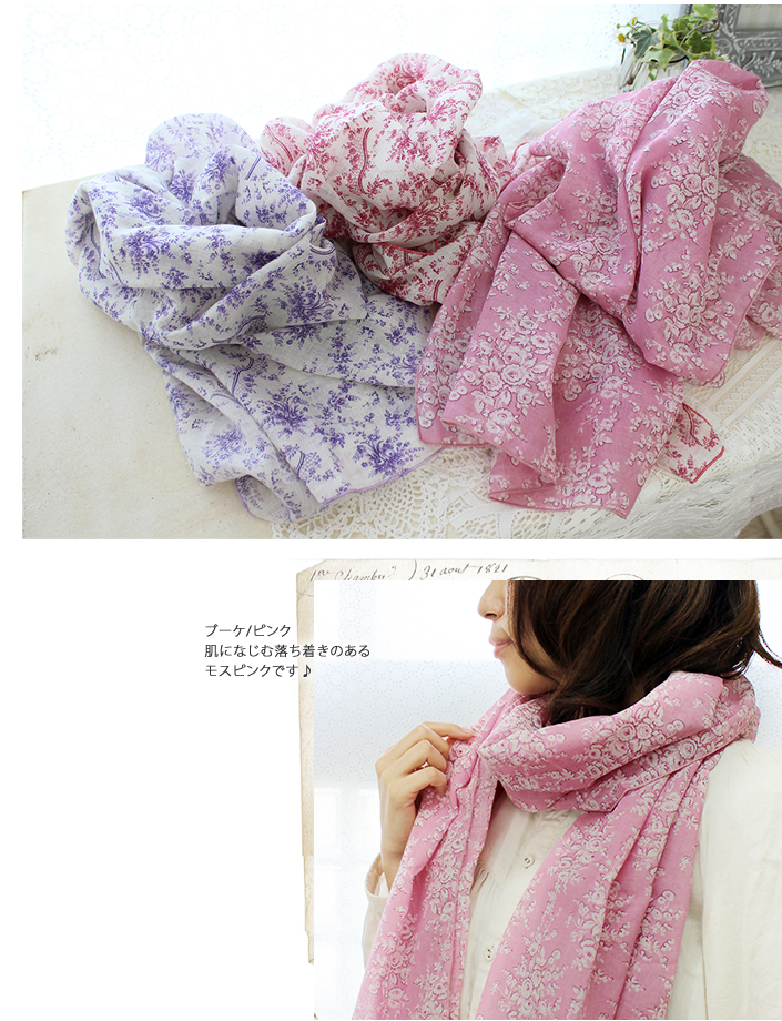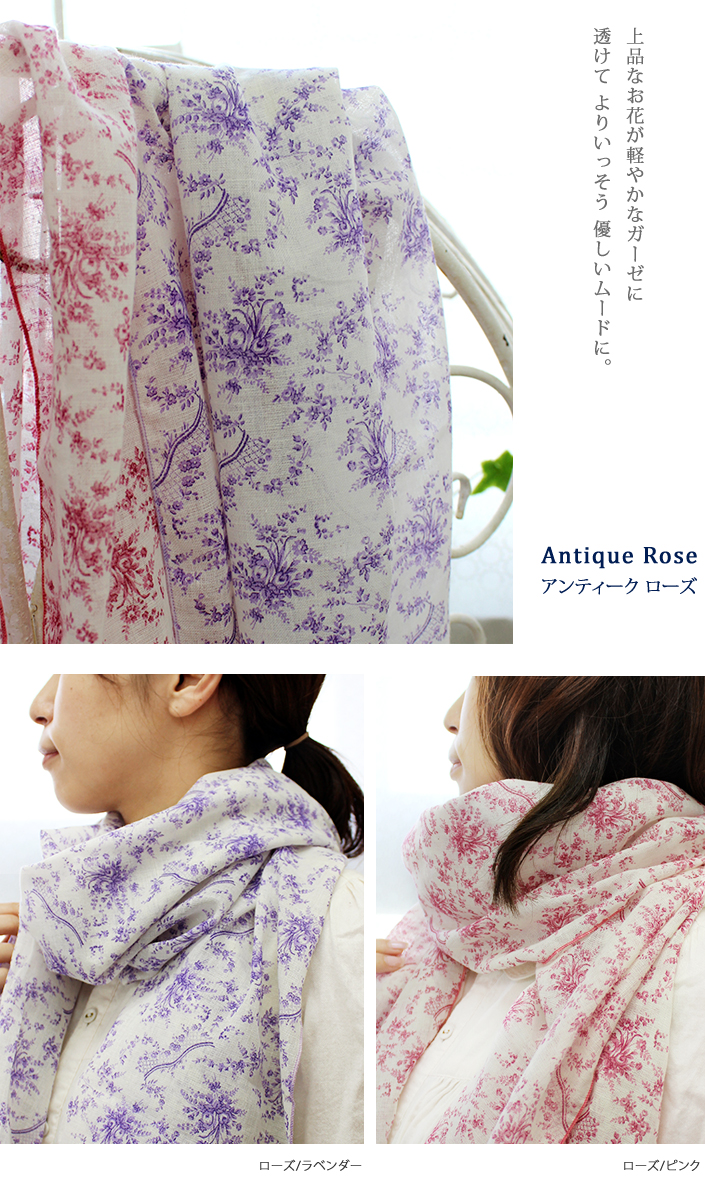 ガーゼストール UVカット アンティーク 花柄 日本製 ブーケ-ピンク