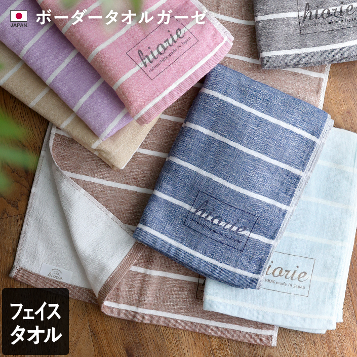 タオル ガーゼタオル ボーダー フェイスタオル 1枚 サックス