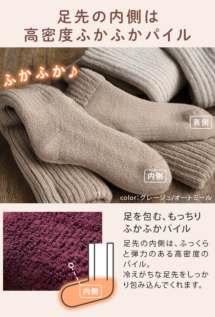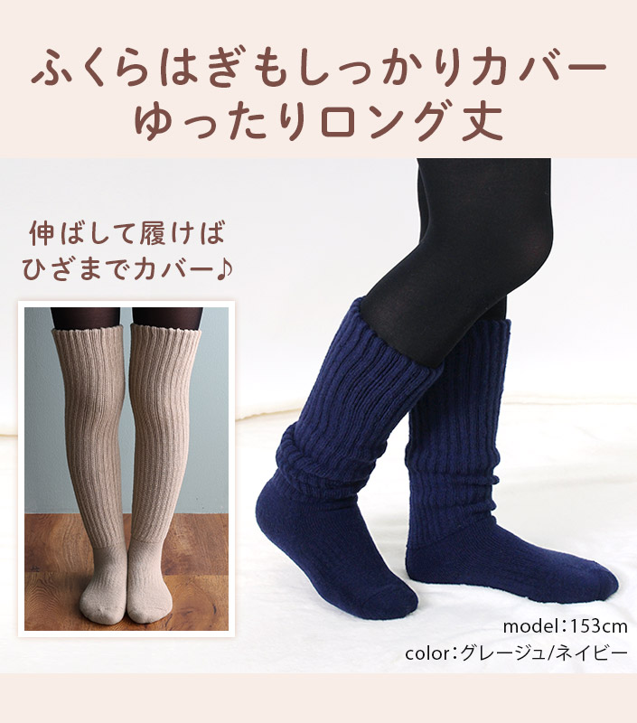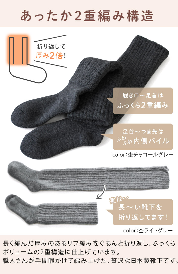 送料無料 冷え取り靴下 日本製 あったか 2重編み 靴下 <ハイソックス> Lサイズ【圧縮】グレージュ