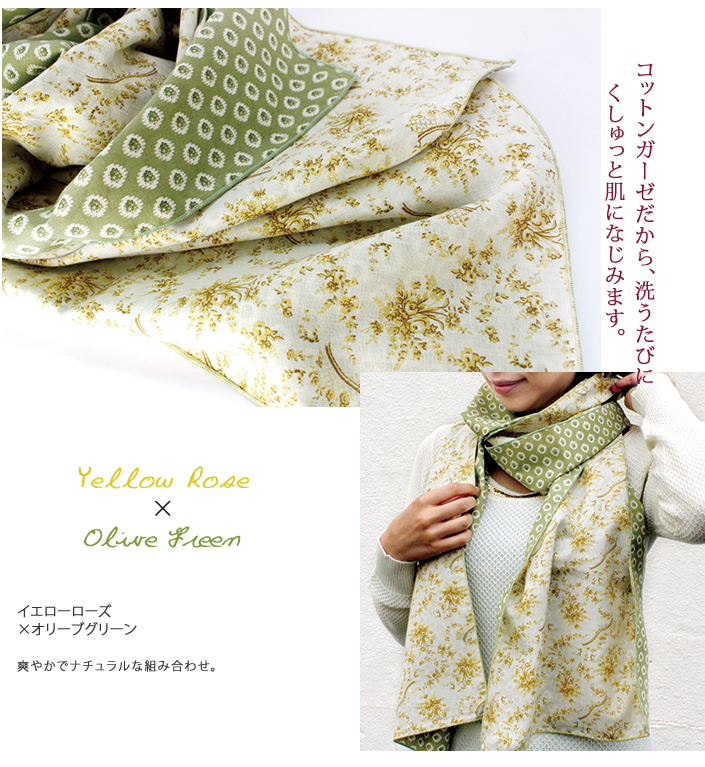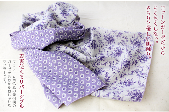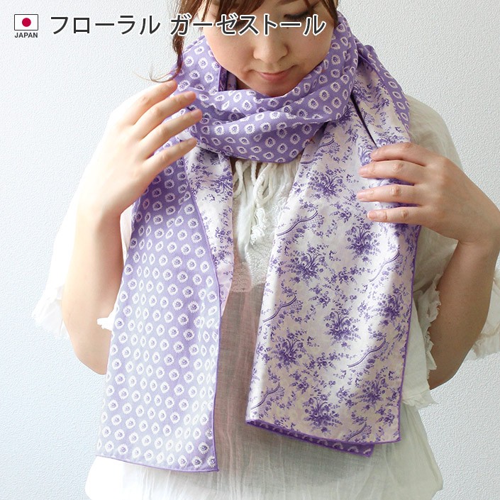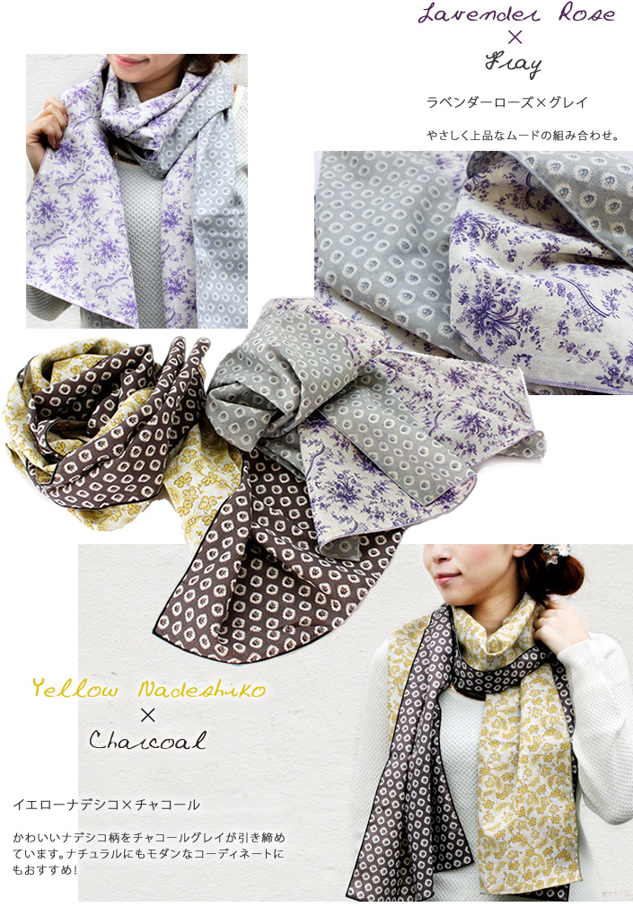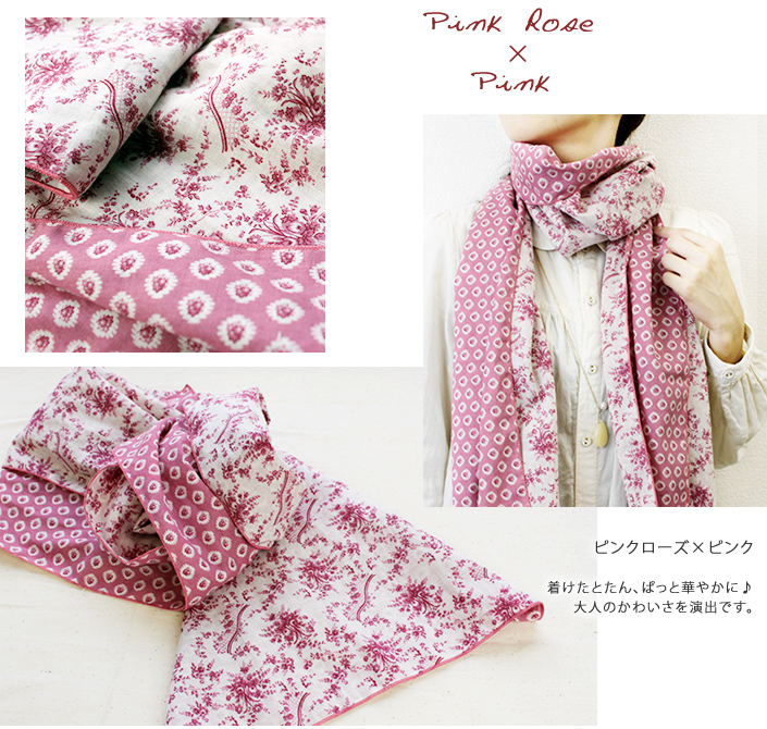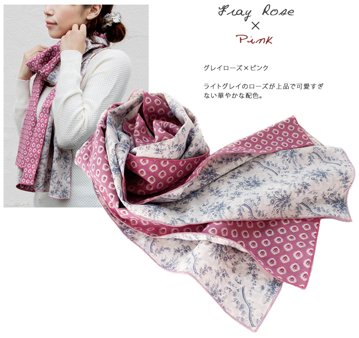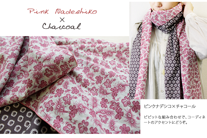 ガーゼストール フローラル 日本製 ピンクナデシコ×チャコール