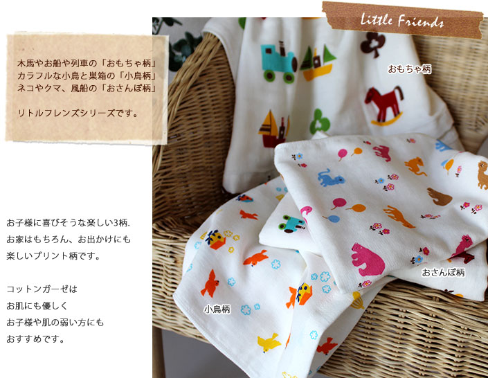 ● 日本製 かわいい ガーゼタオル ギフトセットB<4点セット> リトルフレンドセット