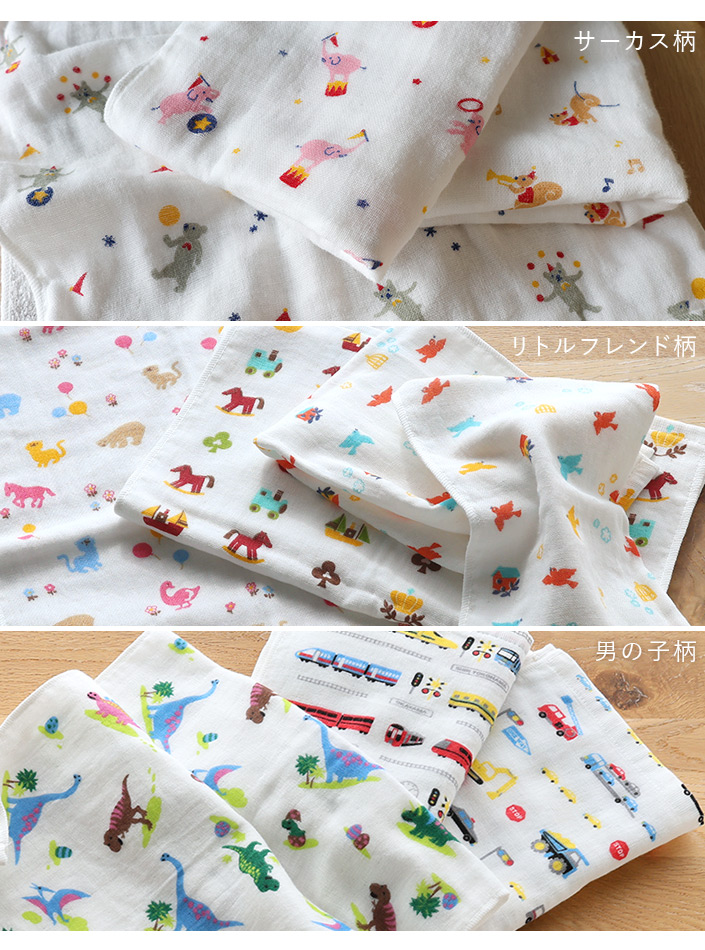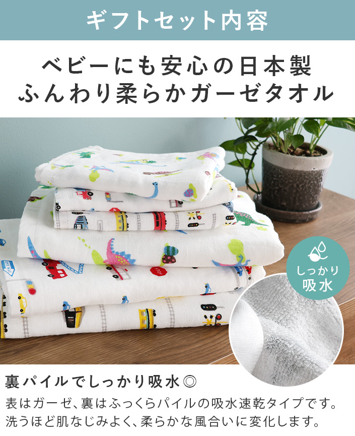 ● 日本製 かわいい ガーゼタオル ギフトセットB<4点セット> 男の子柄セット