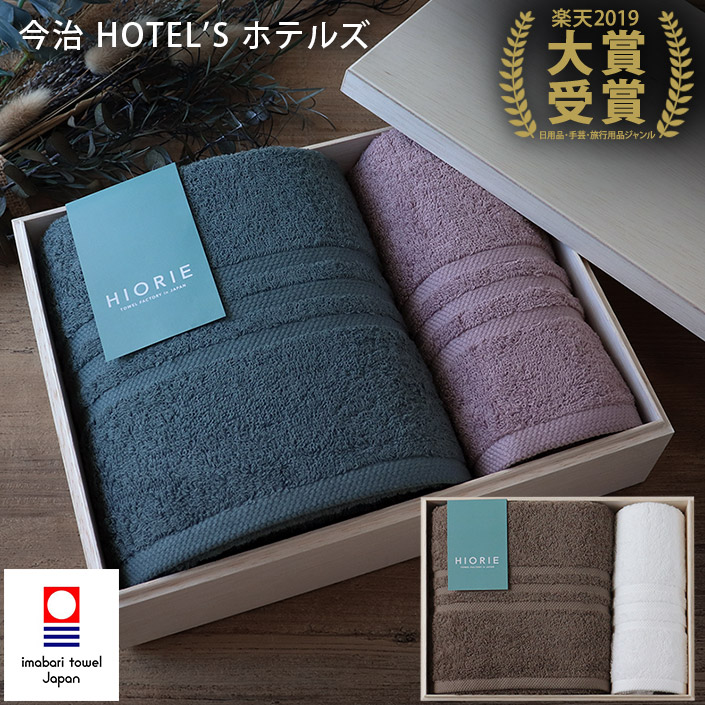 ● <木箱> 日本製 今治タオル ホテルズ ギフトセット<バス1枚+フェイス1枚> モカブラウン+ホワイト 送料無料