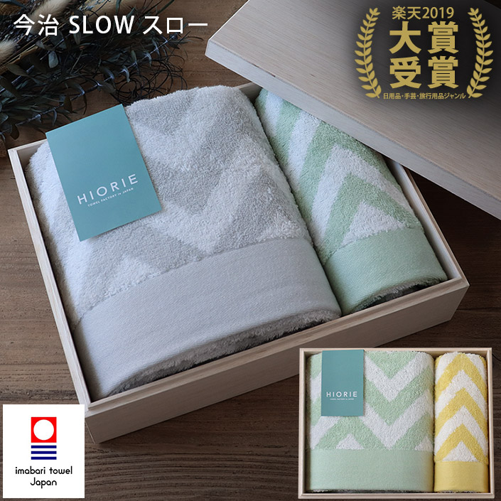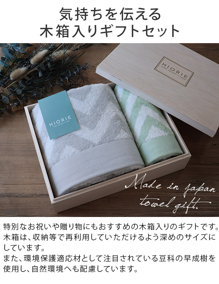 ● <木箱> 日本製 今治タオル スロー ギフトセット<バス1枚+フェイス1枚> グレー+セージ