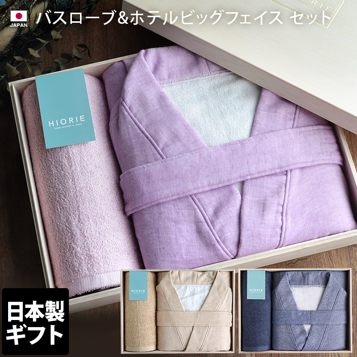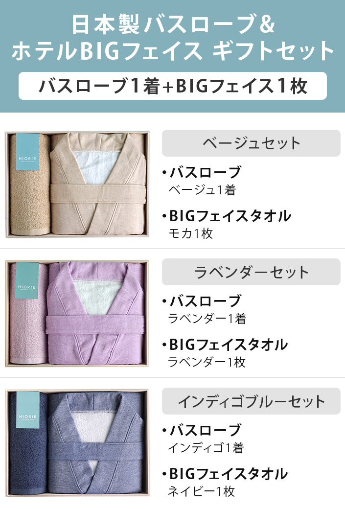 ● <木箱> 日本製 バスローブ & ビッグフェイス ギフトセット インディゴブルーセット