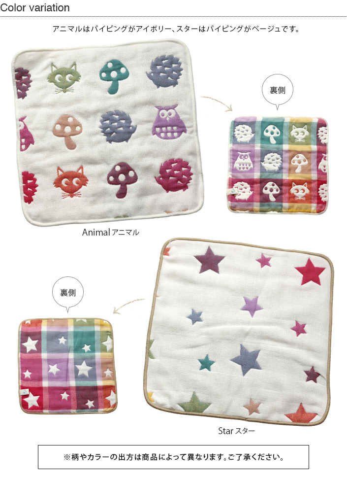 ハンカチ ガーゼハンカチ 6重ガーゼ 1枚 スター