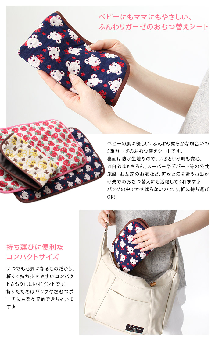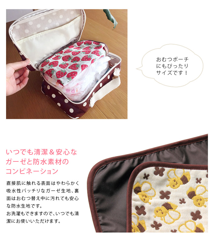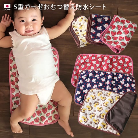 おむつ替えシート おむつ替え防水シート 5重ガーゼ 日本製 ミツバチ