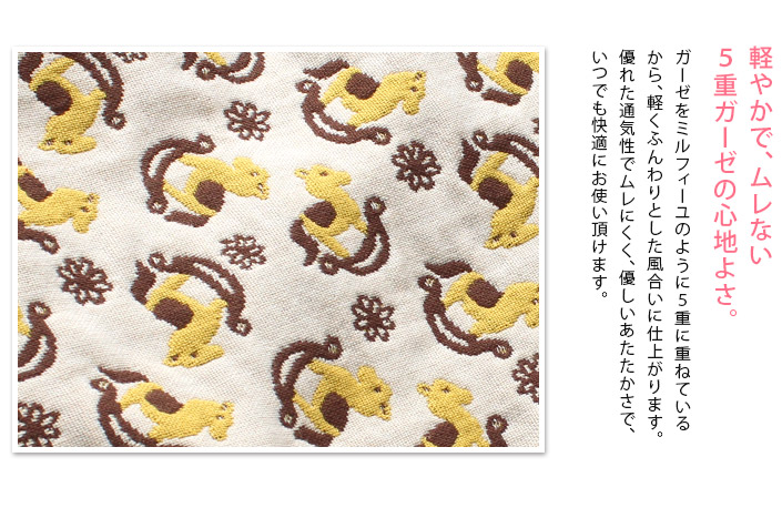 ■素材:身生地…綿100%(5重ガーゼジャガード)、パイピング…アクリル